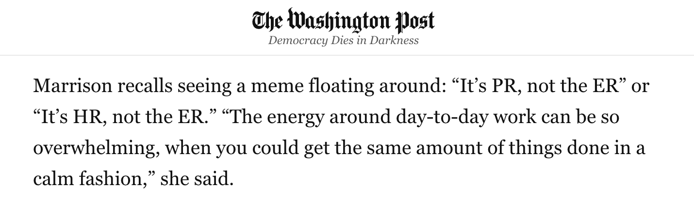 October 21: I spoke with journalist Rainesford Stauffer for her latest piece in The Washington Post. Stauffer writes about Gen Z’s shared antipathy to the workplace “emergency.” I’m a Zillennial, but my point stands.